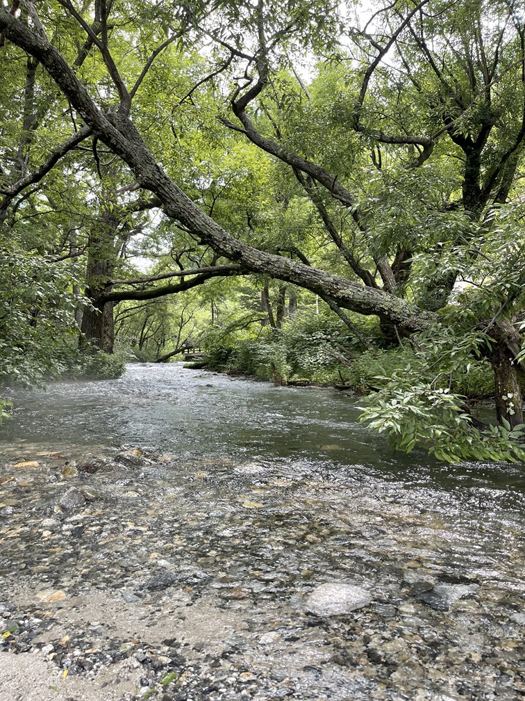 ホテル前の梓川